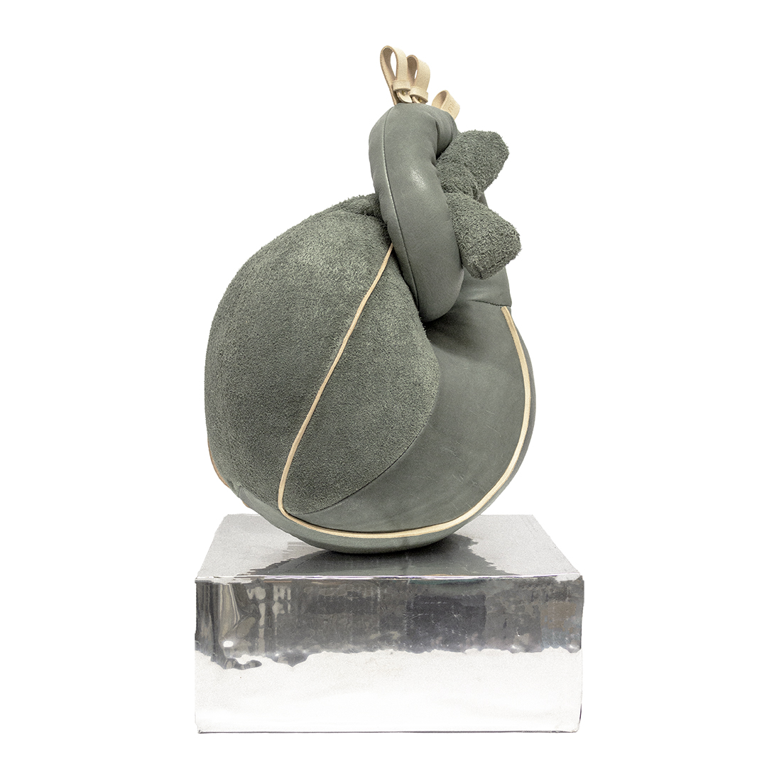 Graues Lederherz mit beiger Lederpaspelierung verziert mit den charakteristischen .miukh. gebrandeten Lederlaschen mit Messingniete. Das Leder ist durch die Pflanzengerbstoffe besonders weich. Die Designer Margit Kasper hat das Sattlerhandwerk von der Pieke auf gelernt und lässt ihr Wissen in die Verarbeitung ihrer Einzelstücke einfließen. Bei dem Herz spielt die Designerin mit dem Kontrast der Texturen der Vorder- und der Rückseite des Leders.